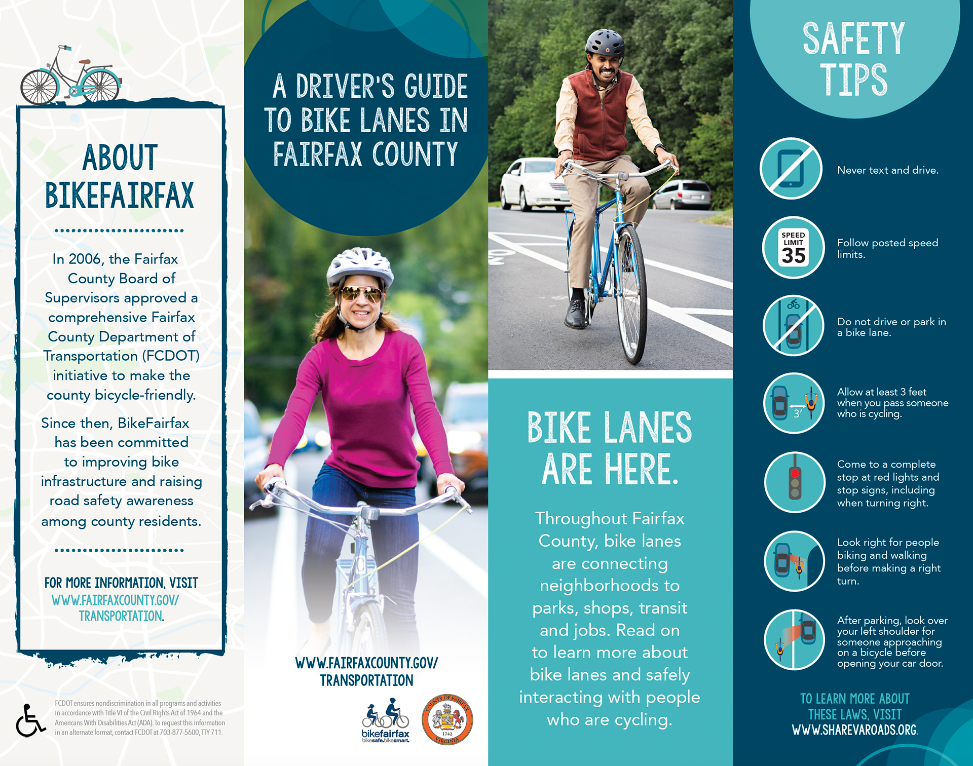 Custom photography to be used in various marketing materials for the Fairfax County Bicycle and Pedestrian Program.